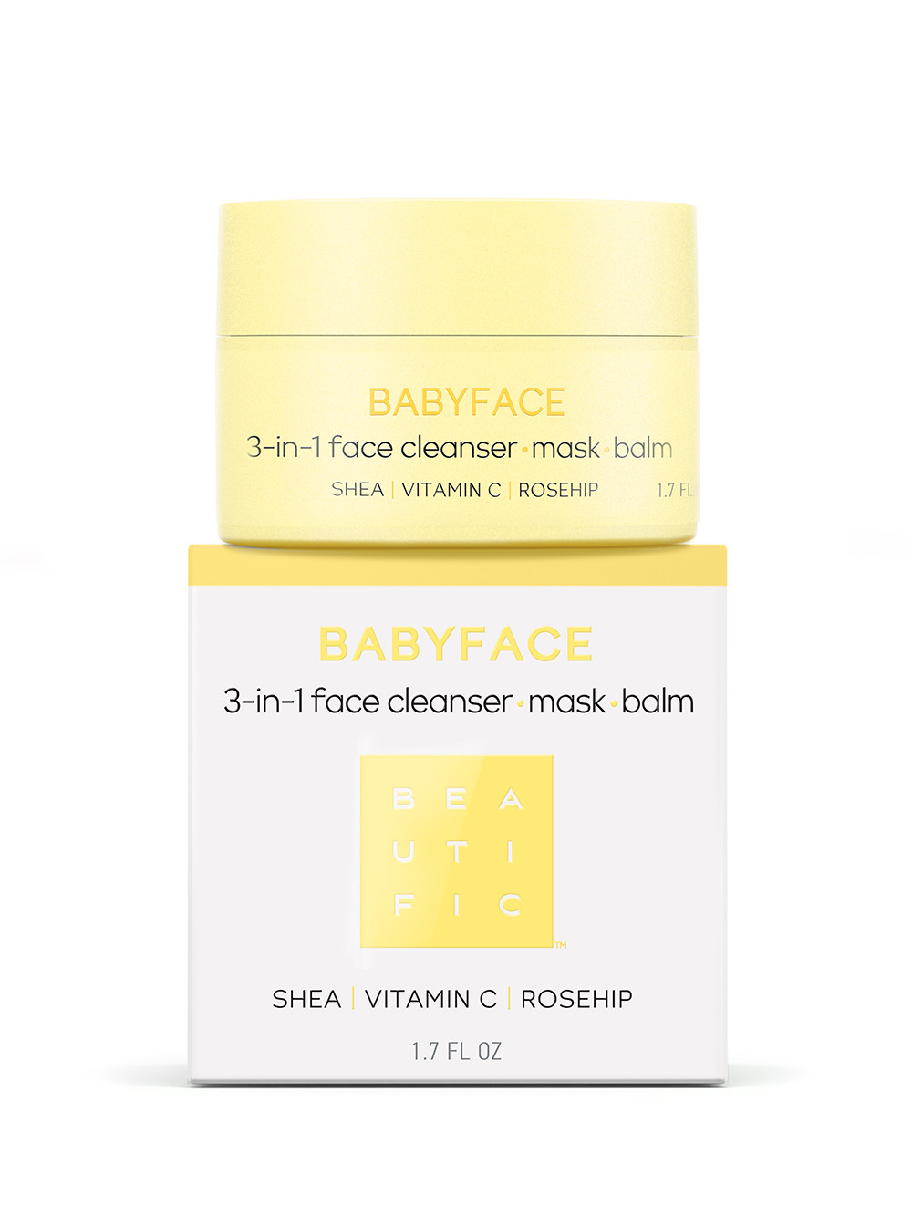Nos encanta presentarte la divinidad facial 3 en 1 con múltiples objetivos, ¡y el nombre lo dice todo! Nuestra mascarilla BabyFace con karité, rosa mosqueta y vitamina C le ofrecerá a tu piel suavidad y frescura, dejándola tersa y radiante.