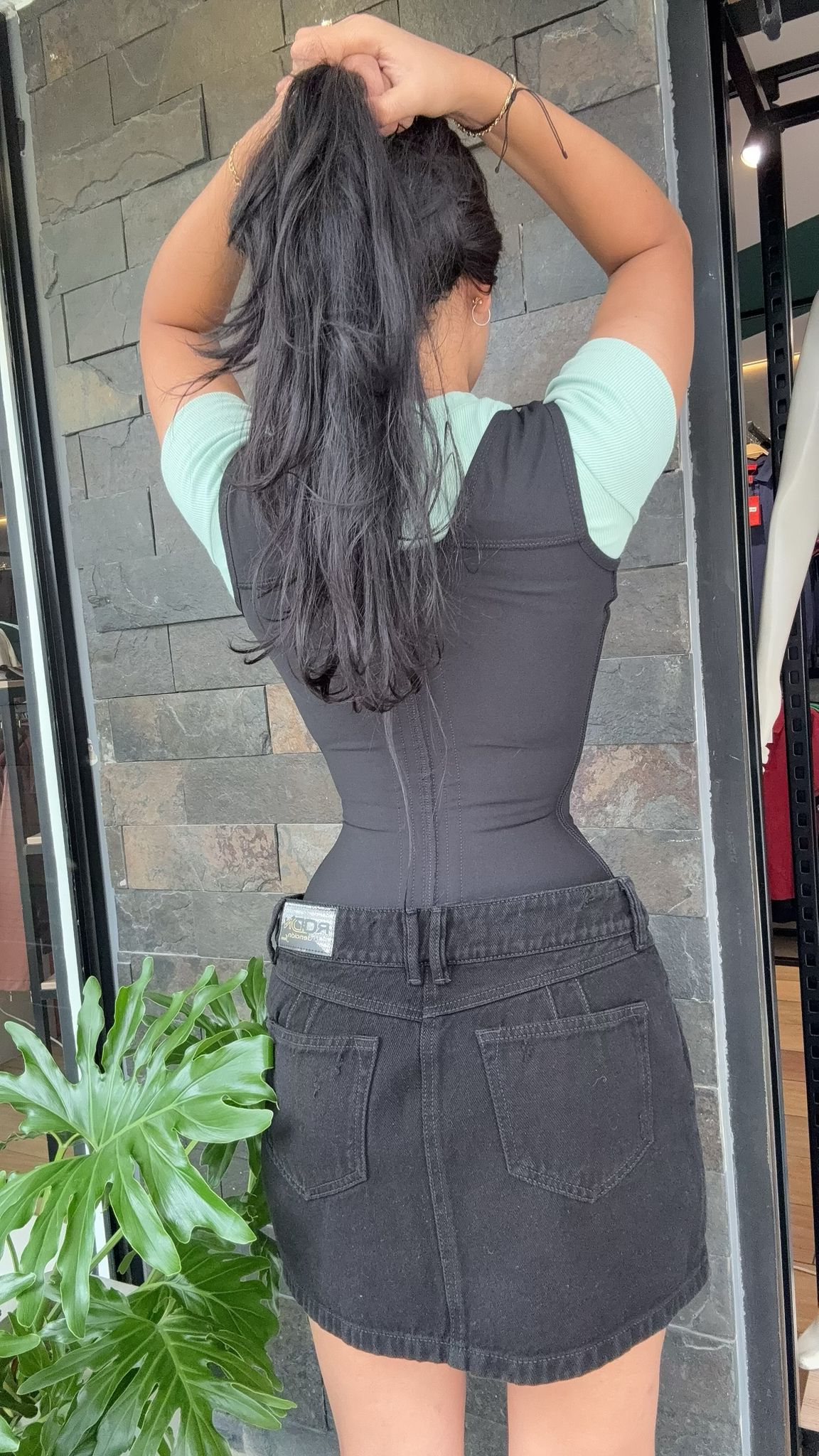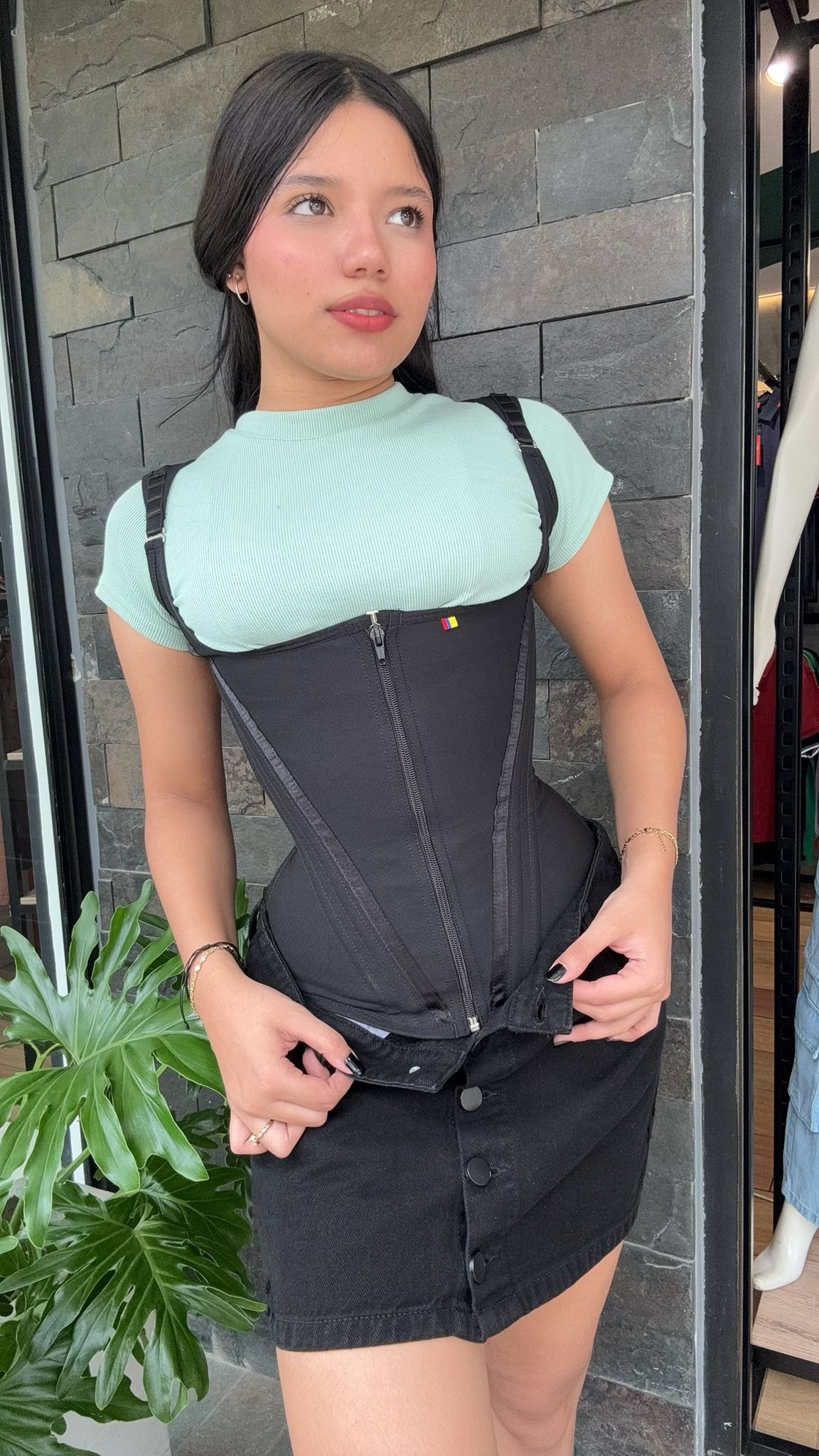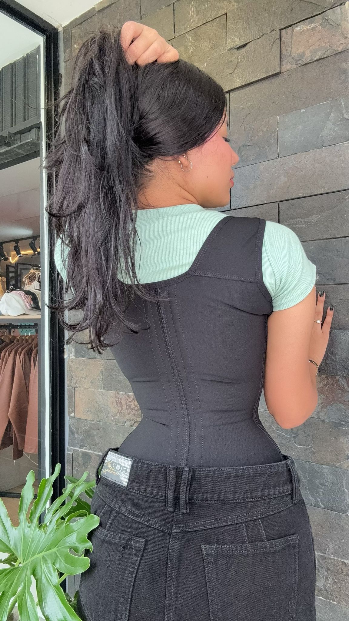 Diseñada en powernet de alta calidad y fabricada en Colombia, este chaleco moldeador cuenta con 13 varillas trenzadas que brindan soporte firme sin enrollarse, garantizando una silueta definida desde el primer uso.
