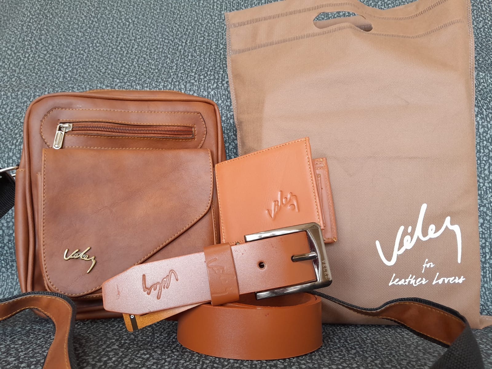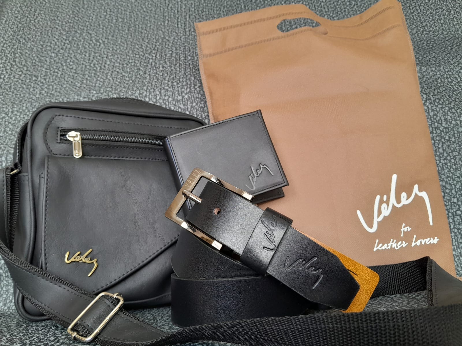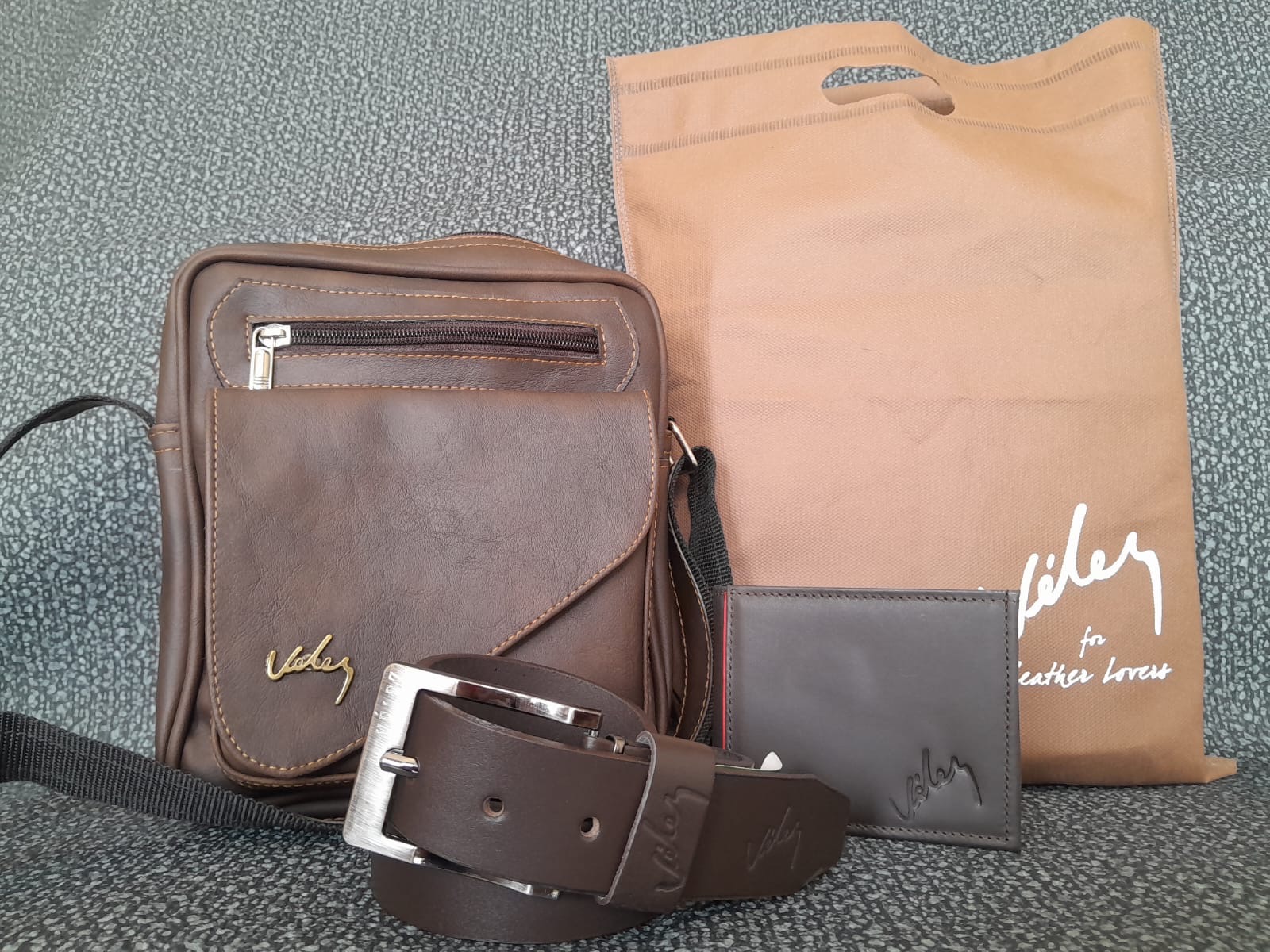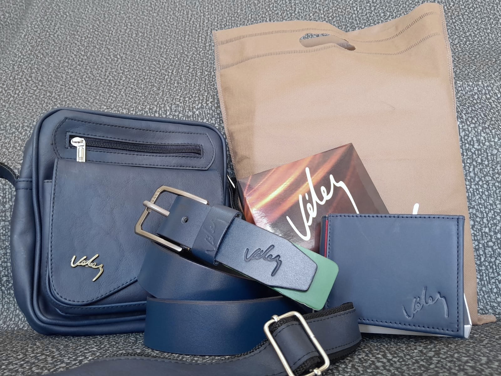 Combo exclusivo para hombre que incluye Carriel réplica Vélez en material DACOTA, correa en cuero 100% genuino y billetera en cuero auténtico. Calidad premium, estilo elegante y el regalo perfecto para cualquier ocasión. Incluye bolsa de lona marcada.