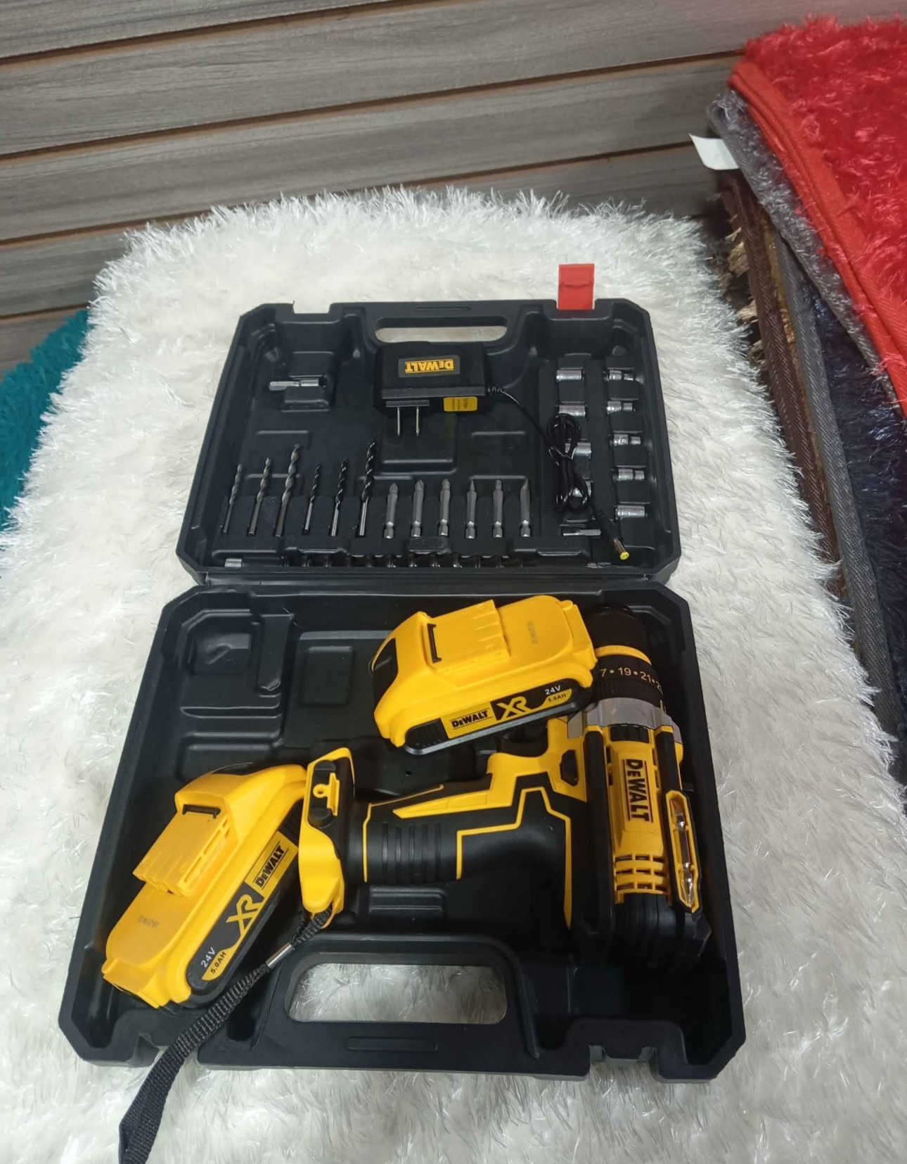 Taladro inalámbrico DeWalt 36V, potente y versátil, con mandril de 1/2” y kit de accesorios para perforar, atornillar y trabajar en múltiples superficies. Ideal para uso profesional y doméstico. Potencia, resistencia y rendimiento en una sola herramienta.